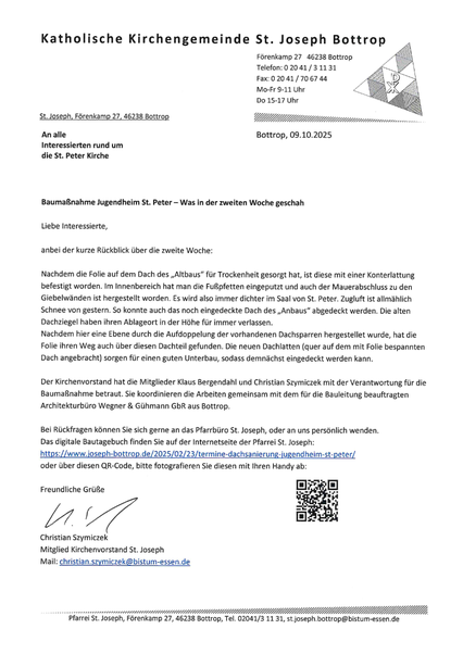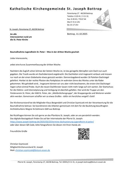 11. Oktober 2025 Dachsanierung Jugendheim St. Peter (Teil 2) 11. Okt. 2025: Wochen-Rückblicke Woche 2 Woche 3 hier geht's zu Teil 1 tagPlaceholderTags: joseph